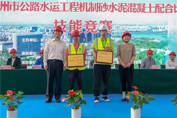 衢交集團(tuán)下屬檢測(cè)試驗(yàn)中心共有九名選手組成三支代表隊(duì)參加了公路水運(yùn)水泥混凝土機(jī)制砂配合比設(shè)計(jì)技能競(jìng)賽。競(jìng)賽中,檢測(cè)試驗(yàn)中心320國(guó)道龍游會(huì)澤里至下章段改建工程工地試驗(yàn)室代表隊(duì)不畏強(qiáng)手、團(tuán)結(jié)協(xié)作、規(guī)范操作、力挫群雄,通過(guò)二天的激勵(lì)角逐,脫穎而出,取得團(tuán)體第二名的好成績(jī),代表隊(duì)成員何猛、鄭文輝、毛建航三人榮獲由衢州市交通運(yùn)輸局、衢州市人力資源和社會(huì)保障局、衢州市總工會(huì)聯(lián)合頒發(fā)的個(gè)人榮譽(yù)證書(shū)。