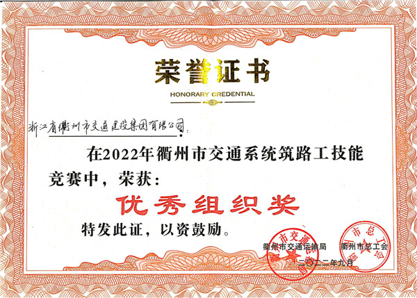 筑路工競賽優(yōu)秀組織獎